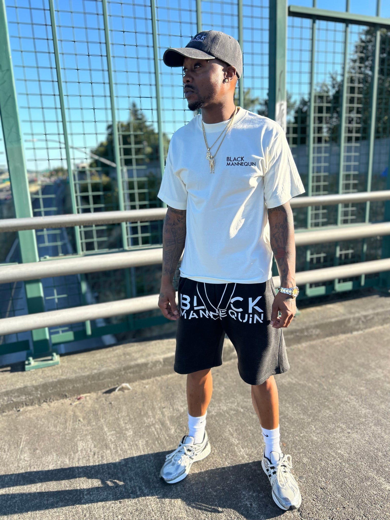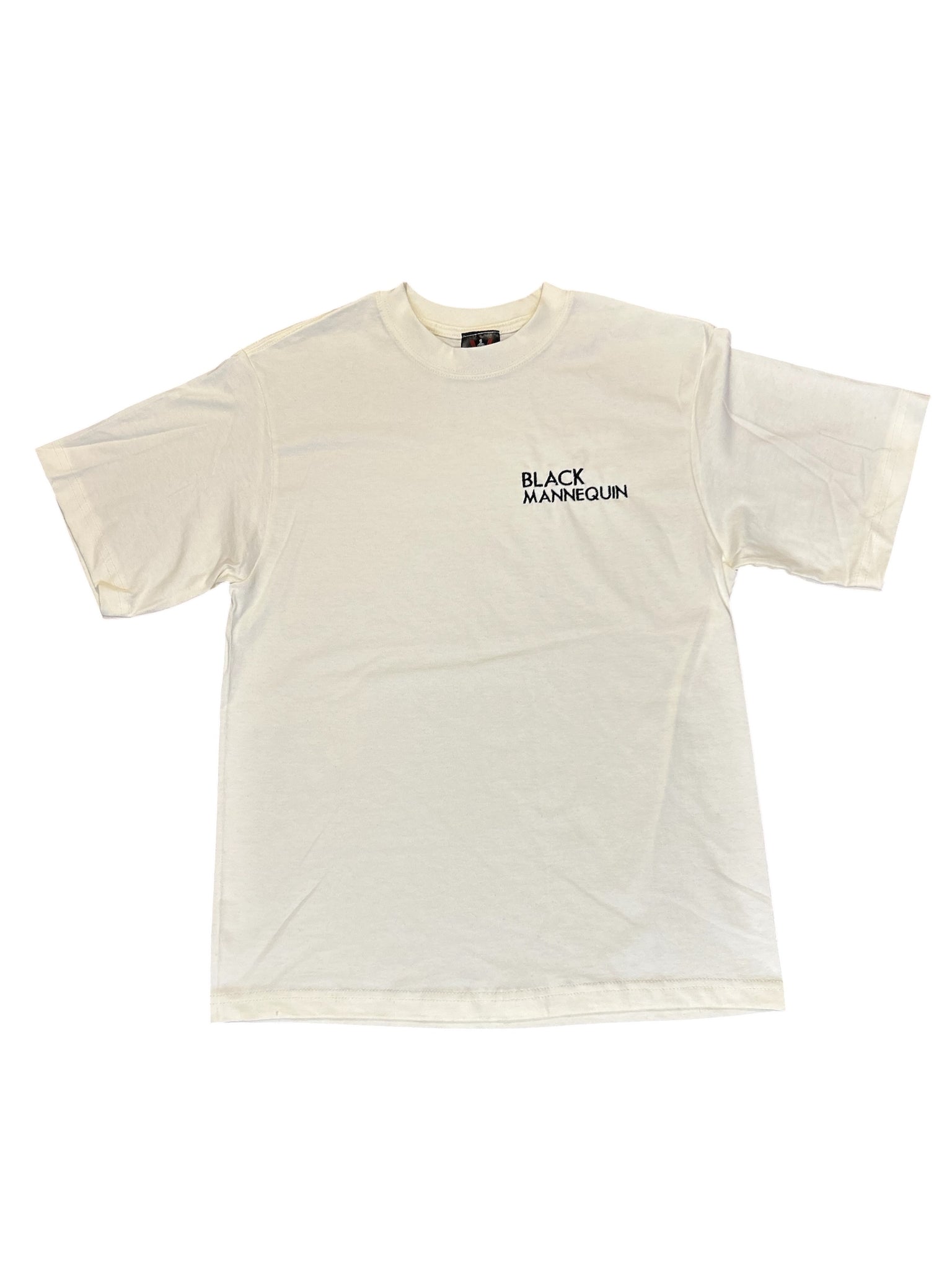 Black Mannequin’s cropped heavyweight tee. Black Mannequin embroidered on front left chest.