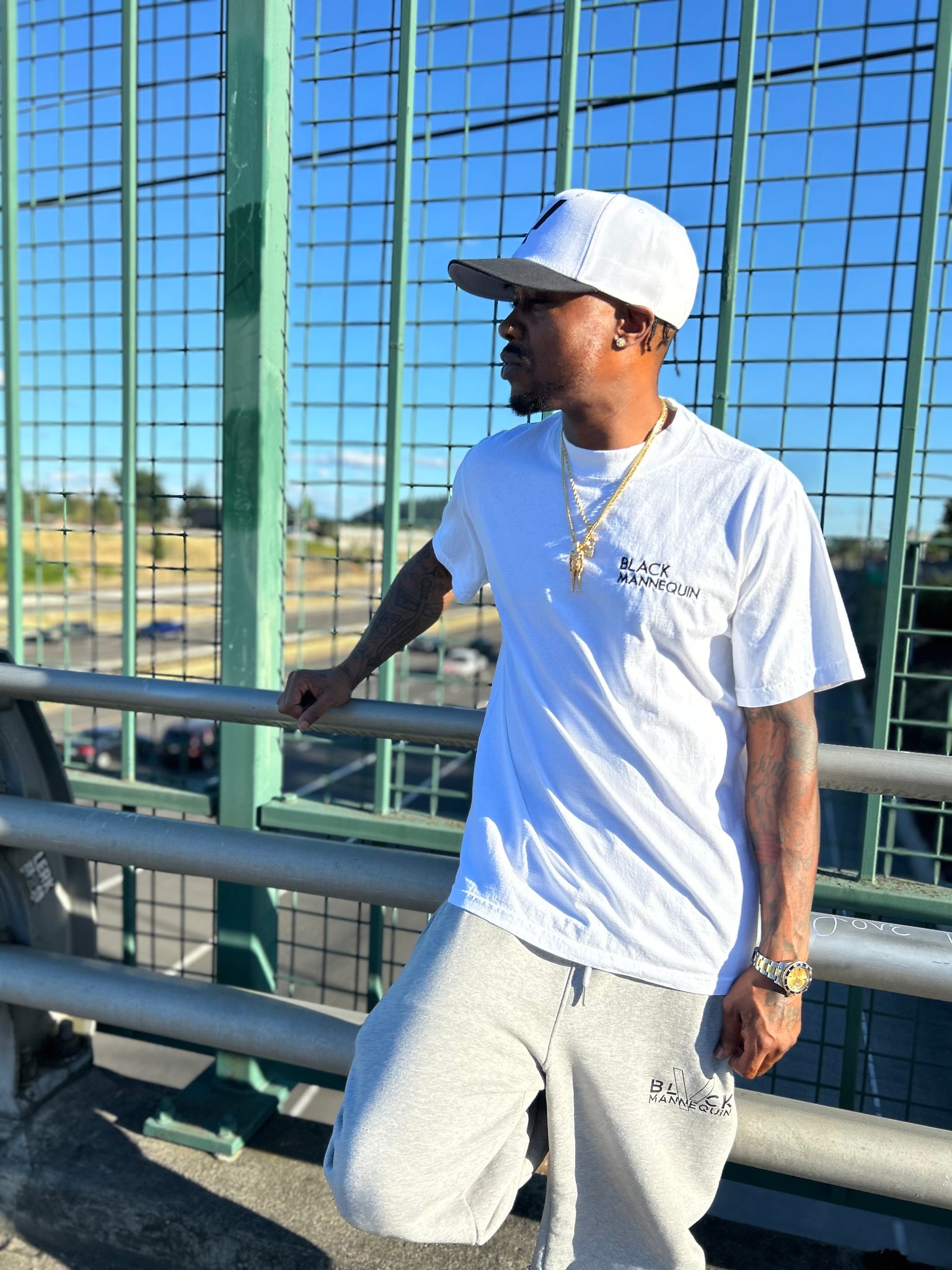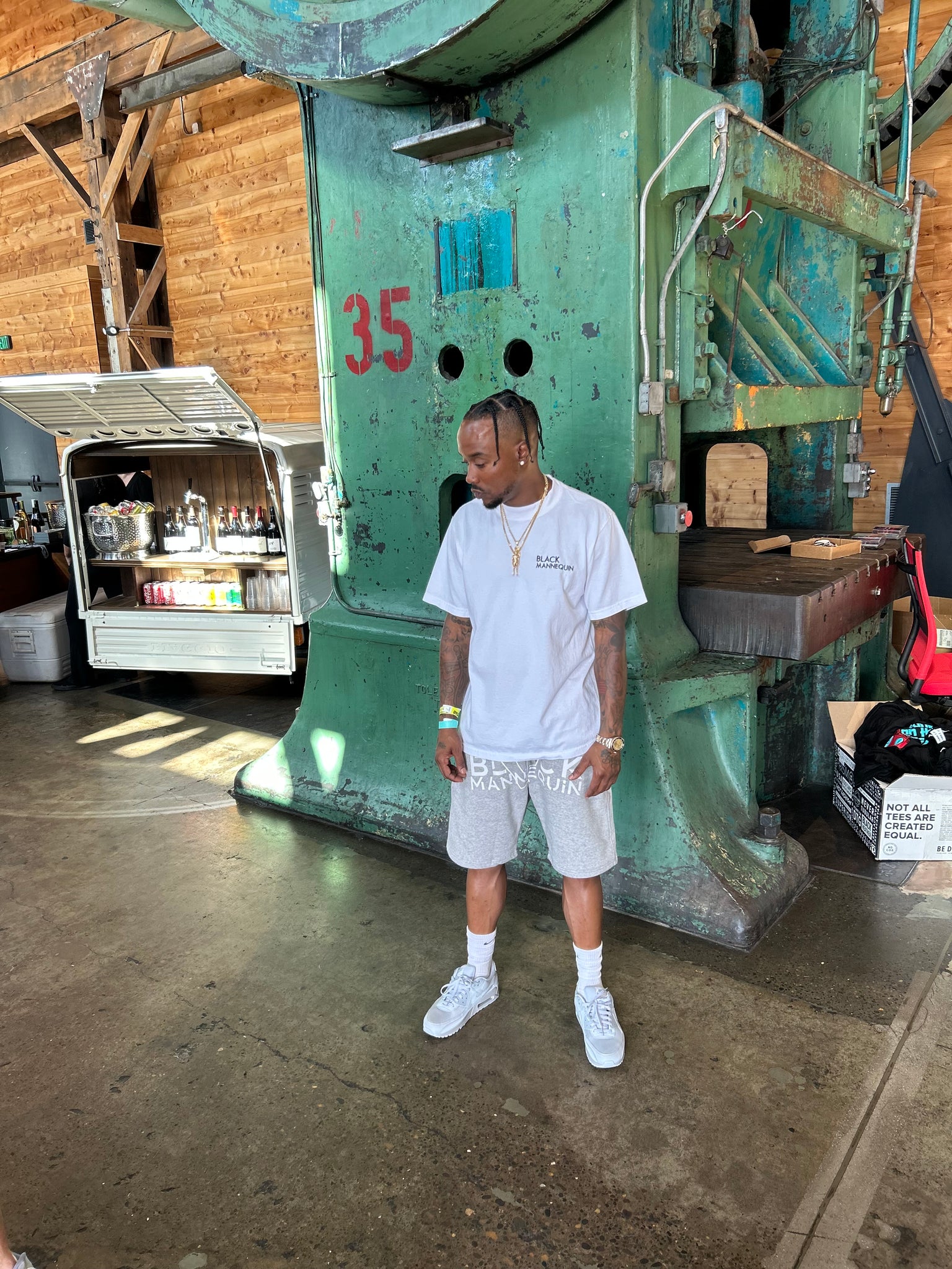 Black Mannequin’s garment dyed heavyweight tee. Black Mannequin embroidered on front left chest.