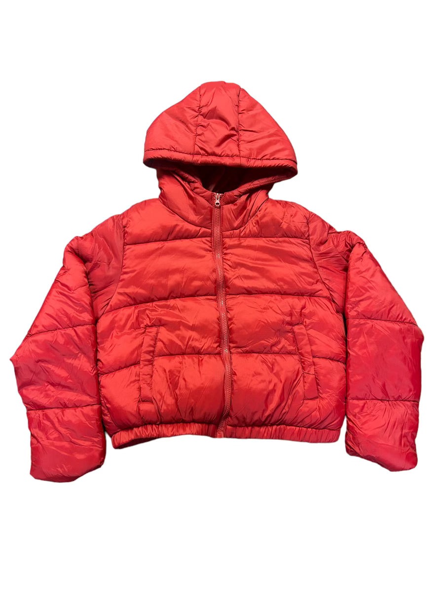 New puff long sleeve hoodie coat, Front zipper, Side pockets, Warm and comfy